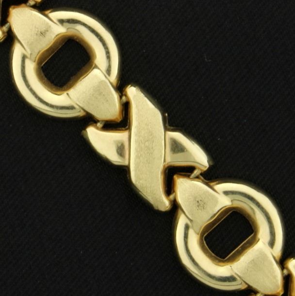 14K yellow gold, it is 8 inches long and 11.8mm wide, with a safety clasp. 12.3g