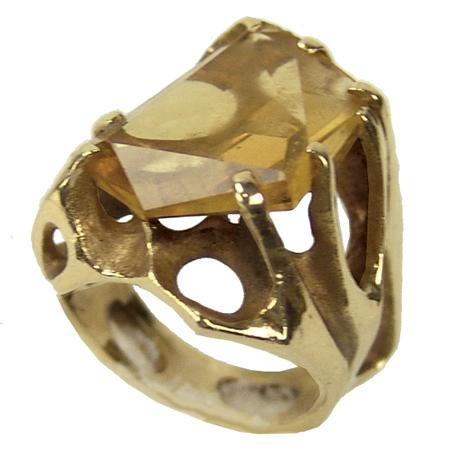 Circa Late 1900s, Very fine multi-armed openwork 14KT gold bezel supporting a smokey-citrine quartz stone. Very good condition, this ring is unsigned but was purchased from Charles Loloma as per owners notes. Size 7-1/2 From the Towne Collection.