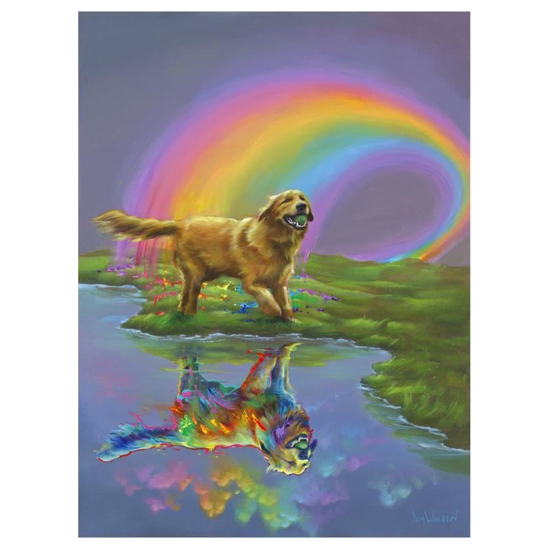 "Gold at the End of the Rainbow" is an AP numbered, artist embellished limited edition giclee on canvas by Jim Warren. The piece is hand signed and accompanied by a letter of authenticity. Measures approximately 24" x 18" (image).