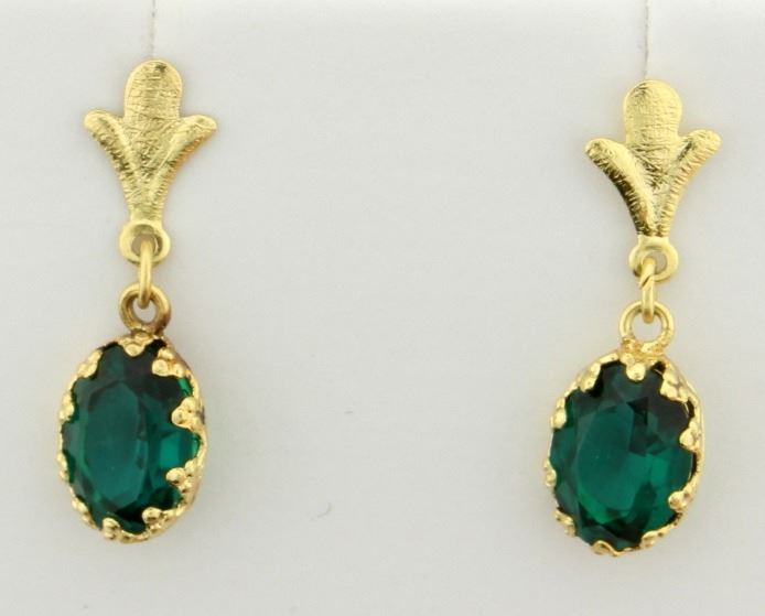 Beautiful 14k yellow gold dangle style earrings with oval cut Lab Emeralds 1.2g