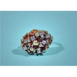 Gold fancy ring, with diamond, 14 Kt, ring size 16,5