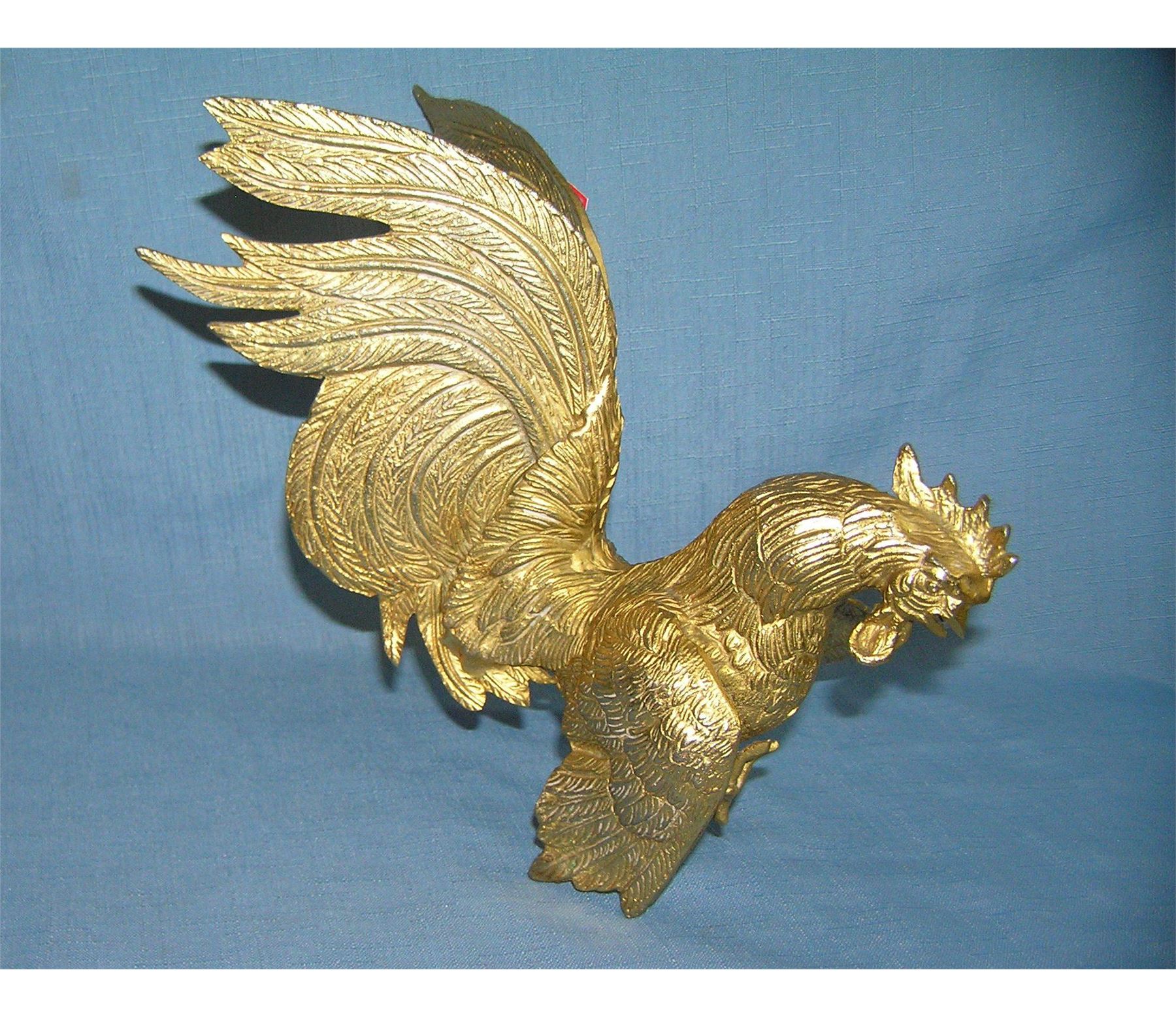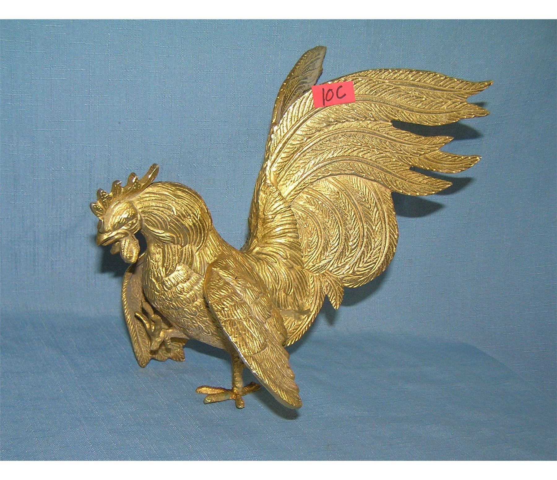 Gold gilded solid brass rooster 7 inches high by 10 inches wide est. value $75.00-$80.00