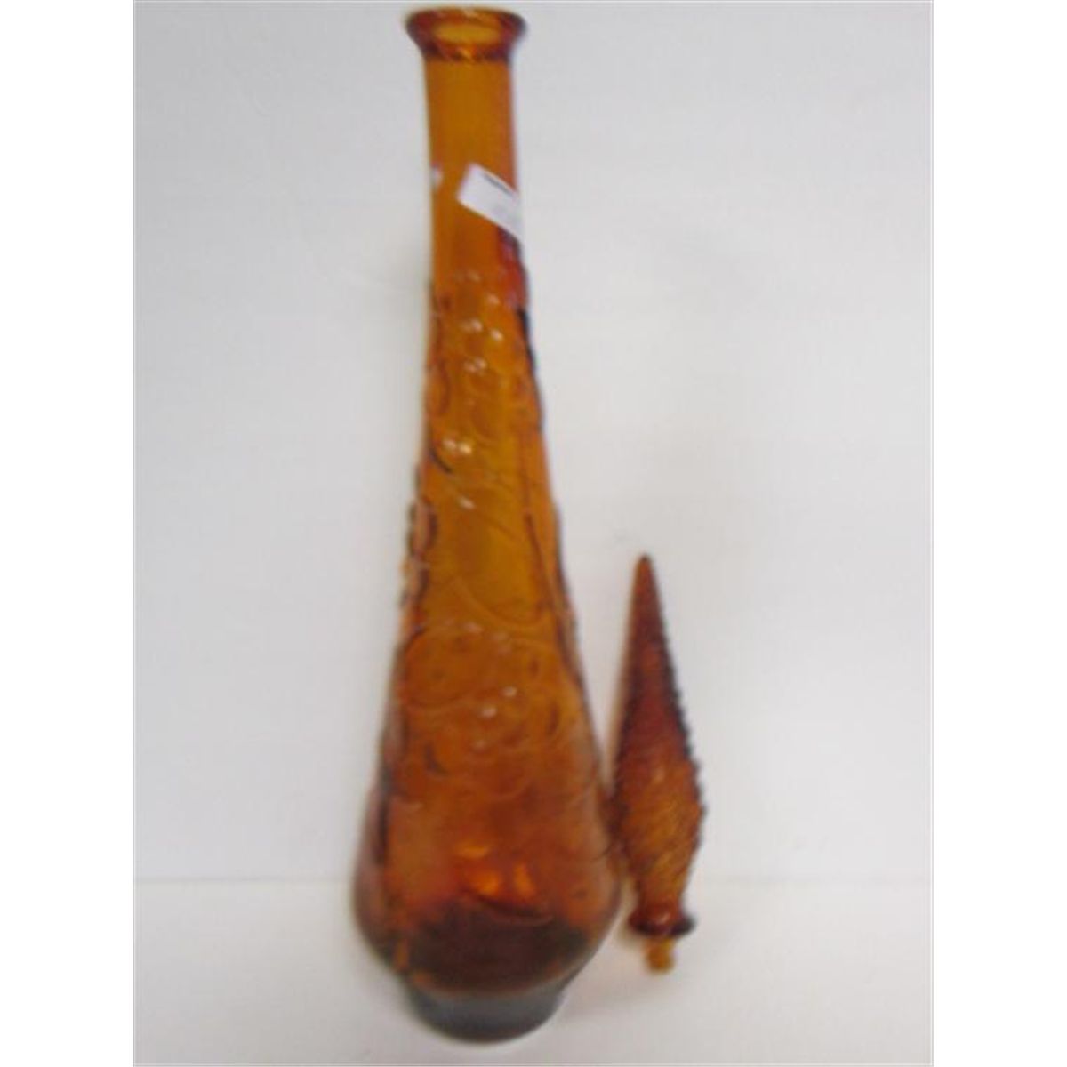 Gold glass decanter with stopper flower and leaf embossed bottle 15 1/2