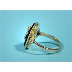 Gold link chain, black onyx and yellow and red gold roses, with matching ring, 14 Kt, l. 38 cm., ring size 16