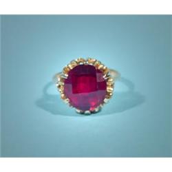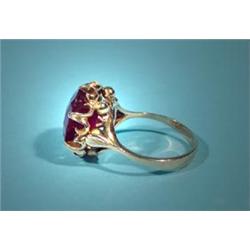 Gold ring with garnet, 14 Kt, ring size 16,5 …