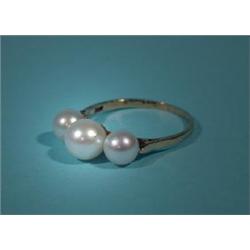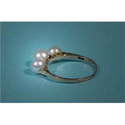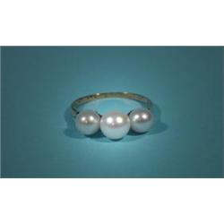 Gold ring with three cultured pearls, 14 Kt, ring size 17…