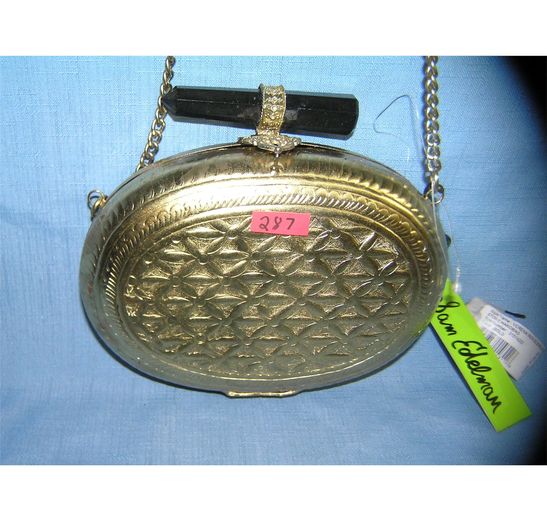 Gold toned designer signed hand bag. Marked inside Sam Edelman with original string tags all gold toned design retail $128.00 est. value $128.00-$138.00