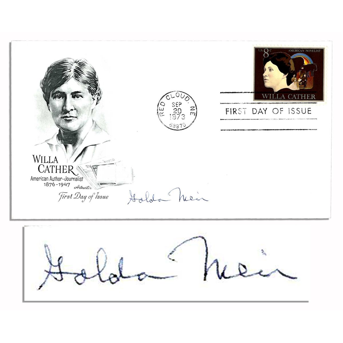 Gold Meir first day cover signed as Israeli Prime Minister. ''Willa Cather'' envelope is dated 20 September 1973. Near fine.