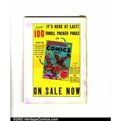Golden Age Odd Size Comic Lot (Various Publishers, 1941 and 1950). This lot includes four miniature size comics, starting with Pocket Comics #1 (Harvey Publications, 1941). This scarce issue features the origin and first appearance of the Black Cat, Cadet Blakey the Spirit of '76, the Red Blazer, the Phantom, Sphinx, the Zebra, Phantom Ranger, British Agent #99, Spin Hawkins, and Satan, Lord of Evil. There is a Hitler appearance in the Satan story. This book has the appearance of a VG/FN, but grades lower due to some brittleness at the extreme top and bottom edges of the spine. It has nice cover gloss and the inside cover is white. This is a very scarce and significant book. Grade: GD/VG. The next book is Speed Comics #15 (Harvey Publications, 1941), which is also a 100-page mini comic with a great cover. The pages are light tan to cream, with a small, clean punch hole on the right side of the front cover (through cover only, not the entire book). The cover is detached at the top staple. Overall, a VG-. The third comic in the lot is Lucky Star #1 by Nation Wide Publications, 1950. This one is a western, with a five-cent cover price. This issue has off-white pages and nice cover gloss. The interior stories are chock-full of racial caricatures. Overall grade is FN. The final book is an interesting one called Captain Atom by Nation Wide Publications, 1950. This book had a five-cent cover price too, and also contains some racial stereotypes. The pages of this one are cream to off-white and the overall grade is FN+. All four books can be yours for one price. Overstreet 2002 value for group = $430. 4 Comic Books Important notice: We expect to be auctioning lots at the rate of 200-250 per hour. Sometimes eBay Premier live bid software cannot keep up with that pace, so we strongly recommend that you place a realistic proxy bid now as insurance to avoid disappointment. Also please note that all Heritage/CAA lots purchased through eBay Premier carry a 20% Buyer's Premium.