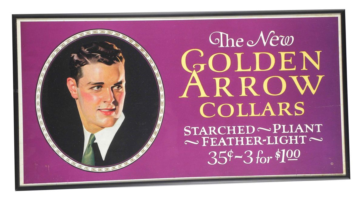 The New Golden Arrow Collars trolley car size paper sign, 1929. Near mint condition. 21 X 11 inches.