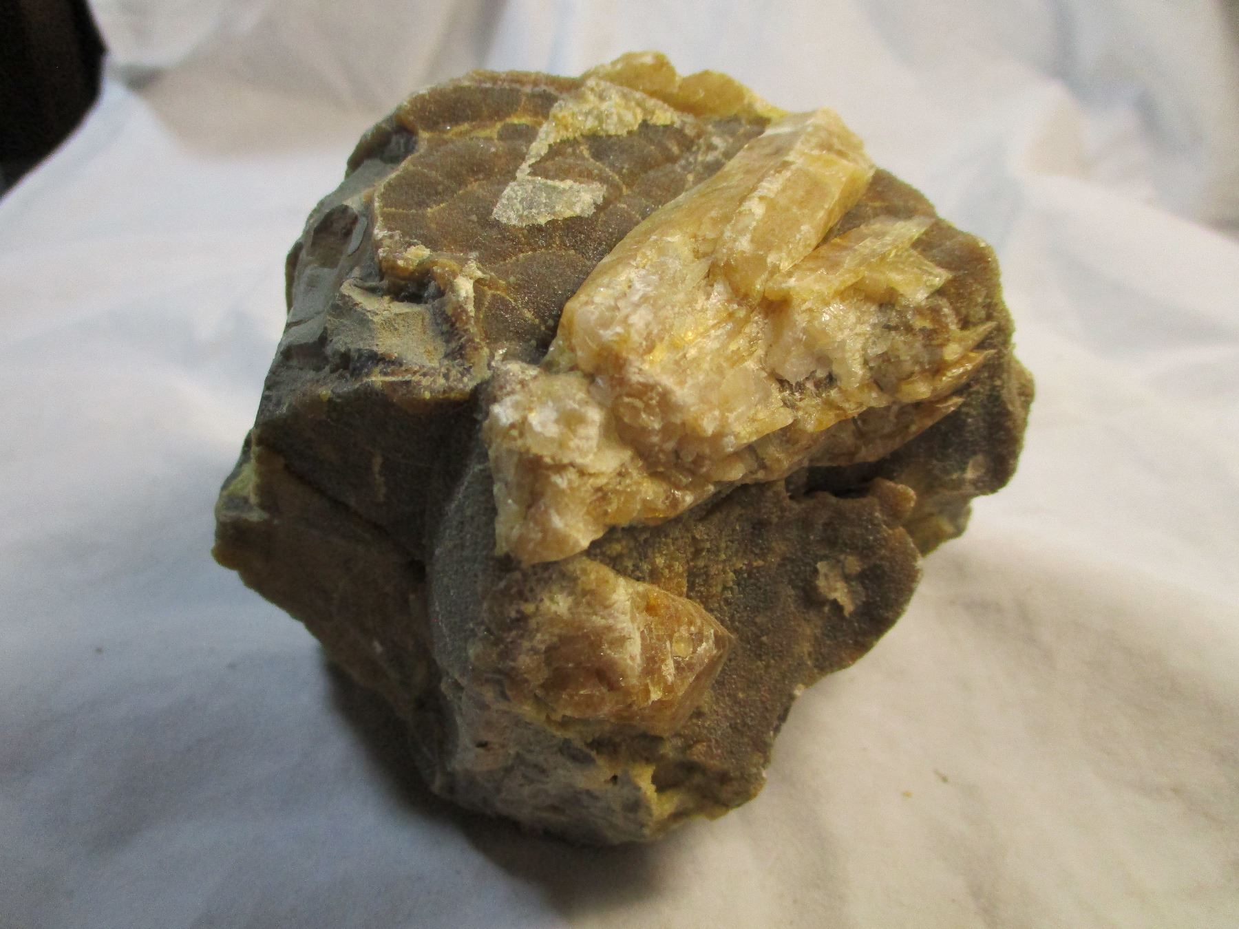 Nice large piece of Golden Barite on Matrix from the Black Hills of South Dakota. 3.692" x 3.279" x 3.257".