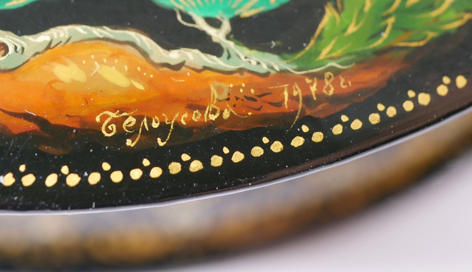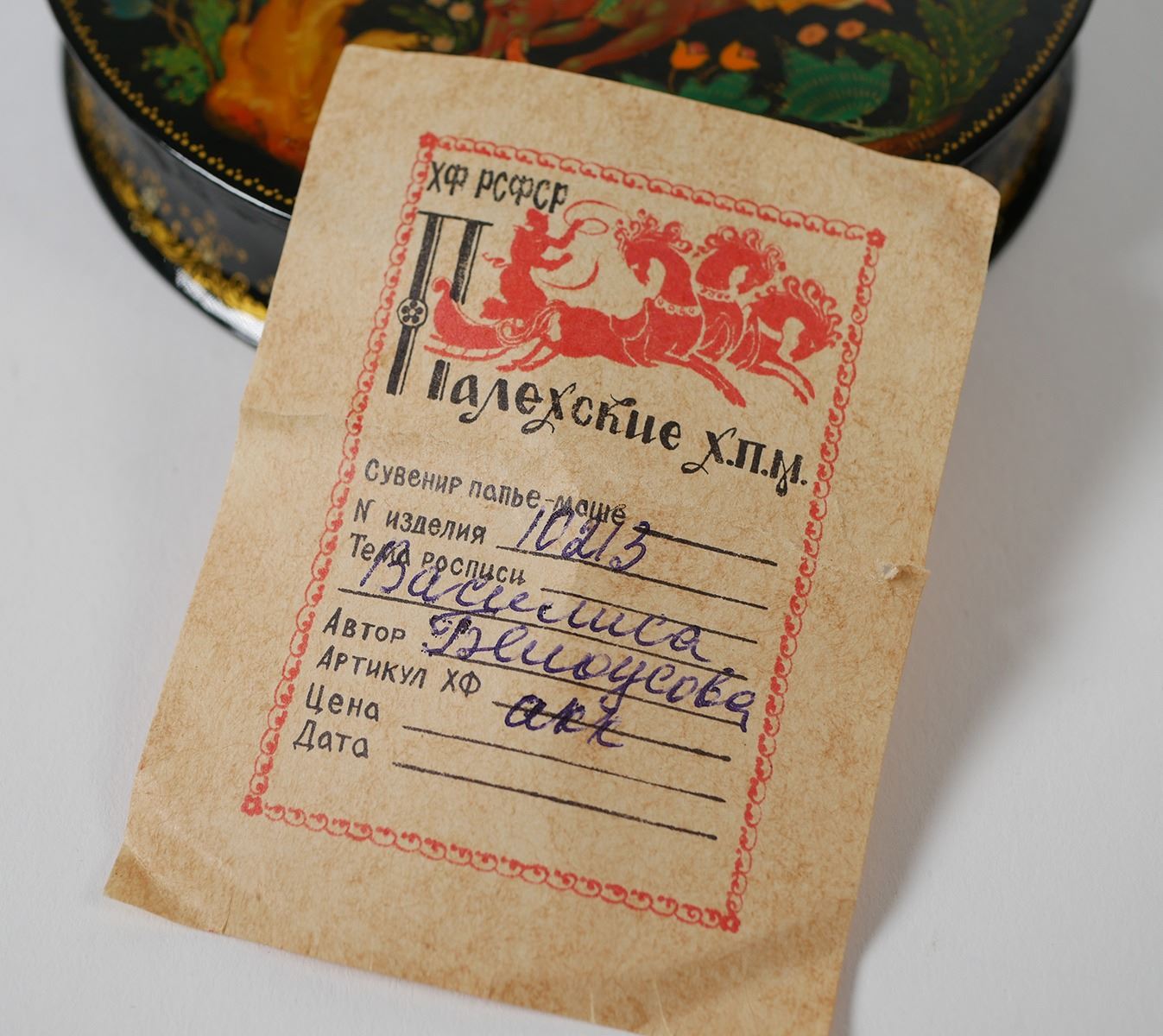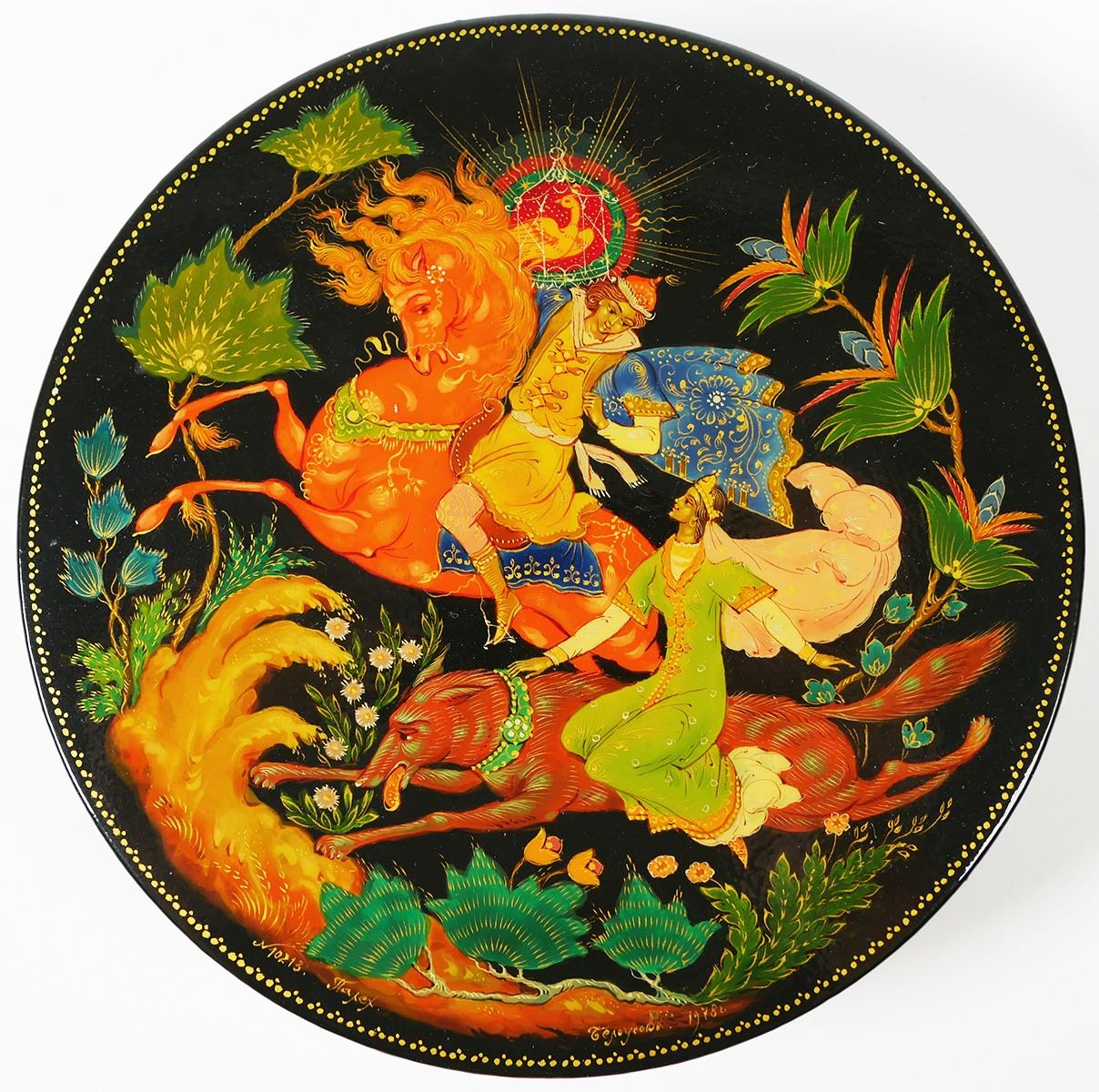 This box is from an important collection, many pieces of which are in this sale, with some having been featured in the book Russian Lacquers, Legends and Fairy Tales by Lucy Maxym, published 1981.