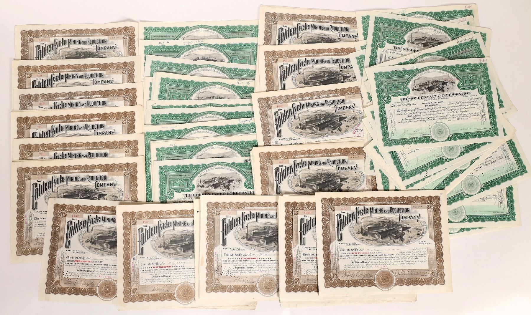 2 different Golden Cycle stocks, green and brown. c. 1915-34.