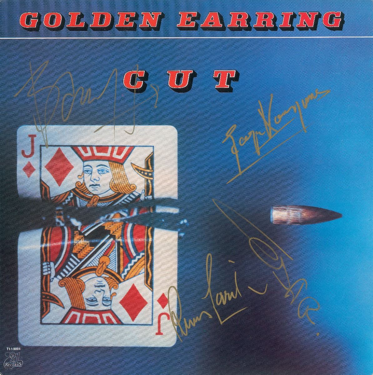 Cut album flat signed on the front cover in gold ink by Barry Hay, George Kooymans, Cesar Zuiderwijk, and Rinus Gerritsen. In fine condition, with some slight dings along left edge. The record is not included.