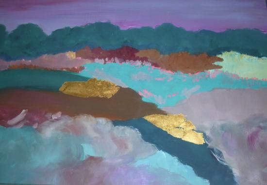 A wonderful Mixed Media. Only 1 done. The gold is actually Gold Leaf.. When you shine a light on it the gold shines..It is beautiful.Has 4 inches of white space surrounding image. UNFRAMED!!