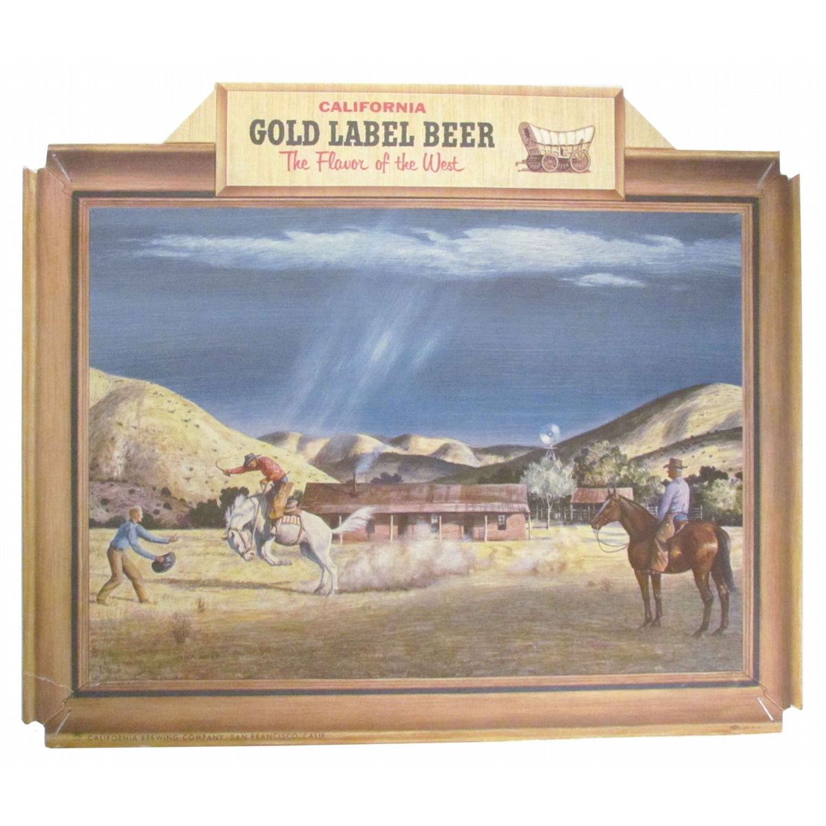 Golden Label Beer Self Framed Cardboard Sign. The California Brewing Company, San Francisco, Calif. Tear in frame at bottom right and left otherwise excellent condition. 24 X 20 inches. Start Price $50