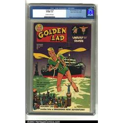 Golden Lad #2 Mile High pedigree (Spark Publications, 1945) CGC VF/NM 9.0 Off-white to white pages. Mort Meskin's striking cover is special enough, but when you see this book, you know there's much more. Yes, it's from the remarkable Mile High pedigree. Number two of a five-issue run, this issue might represent the chance you've been looking for to possess a Mile High for your very own. Overstreet 2002 NM 9.4 value = $360. Important notice: We expect to be auctioning lots at the rate of 200-250 per hour. Sometimes eBay Premier live bid software cannot keep up with that pace, so we strongly recommend that you place a realistic proxy bid now as insurance to avoid disappointment. Also please note that all Heritage/CAA lots purchased through eBay Premier carry a 20% Buyer's Premium.