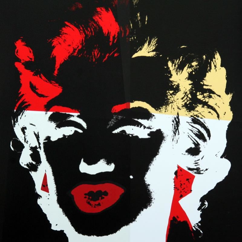 "Golden Marilyn 11.39" is a limited edition silk screen print on museum board from Sunday B Morning featuring the works of Andy Warhol. The piece is stamped in blue on the back with "Published by Sunday B. Morning" and "fill in your own signature" and is accompanied by a certificate of authenticity. Measures approximately 36" x 36".