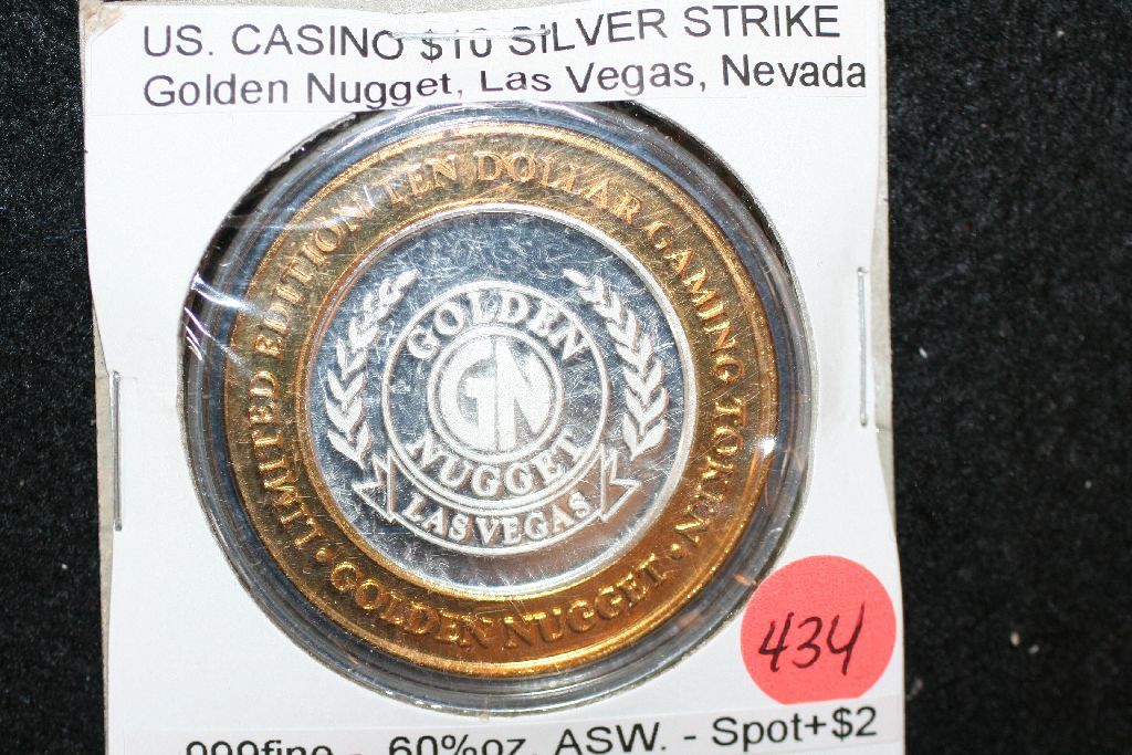 Golden Nugget Las Vegas NV Limited Edition Two-Tone $10 Gaming Token; .999 Fine Silver .60% Oz. ASW