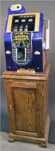 Golden Nugget Slot Machine with stand <BR>Due to laws regulating the sale of antique slot machines, I, as the seller, will not sell to from members in the states of Alabama, Connecticut, Hawaii, Indiana, Nebraska, South Carolina, and Tennessee. Bids from members residing in any of these states will be cancelled.