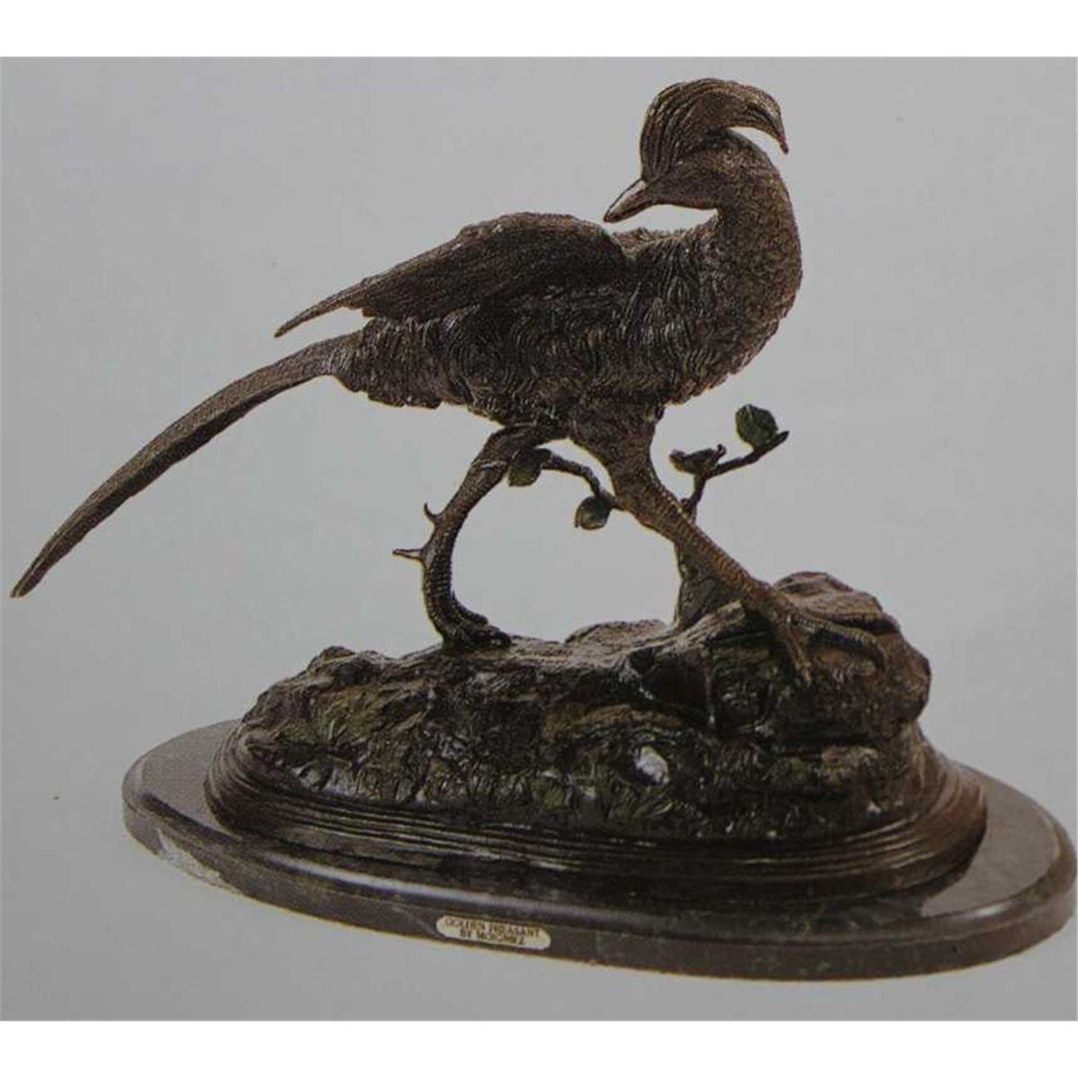 "Golden Pheasant" Bronze Sculpture - After Moigniez - Museum Brown Finish - Mounted On A Fine Italian Marble Base - Beautifully Detailed - Signed - Mint Condition - 27"H X 30"W - Lost Wax Cast Bronze