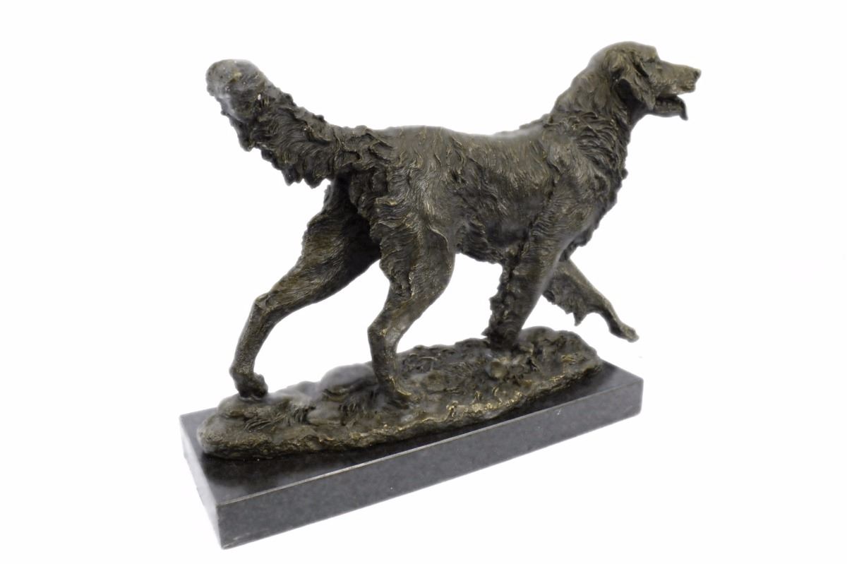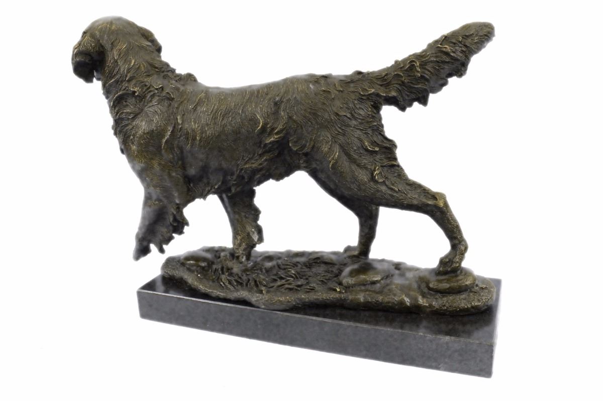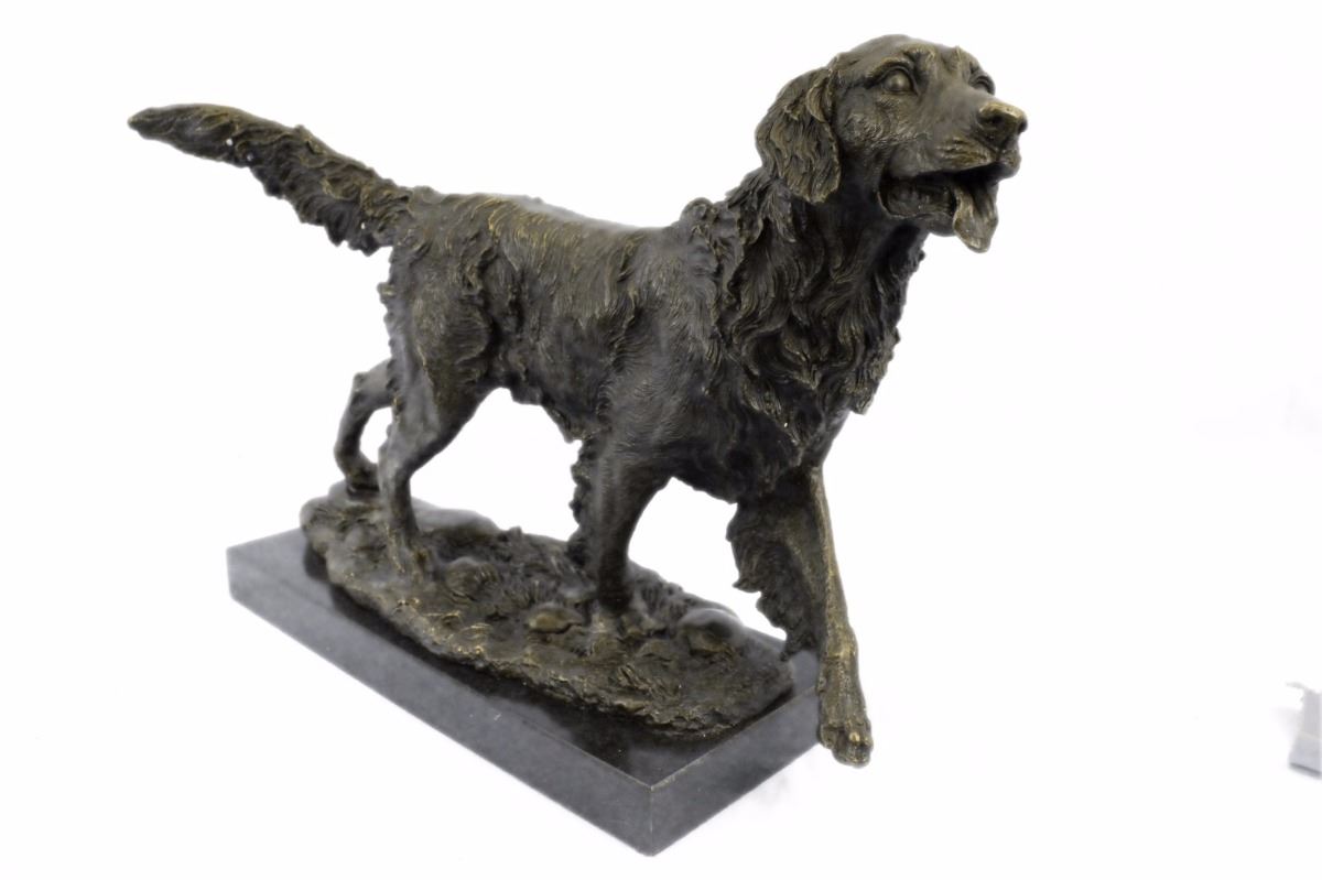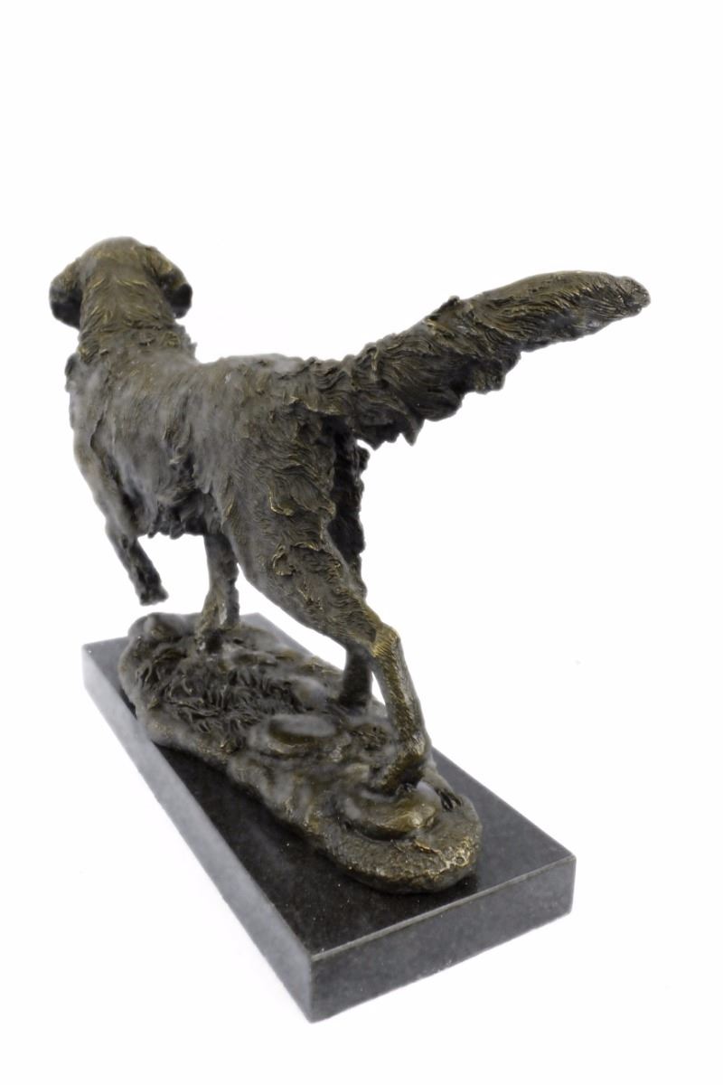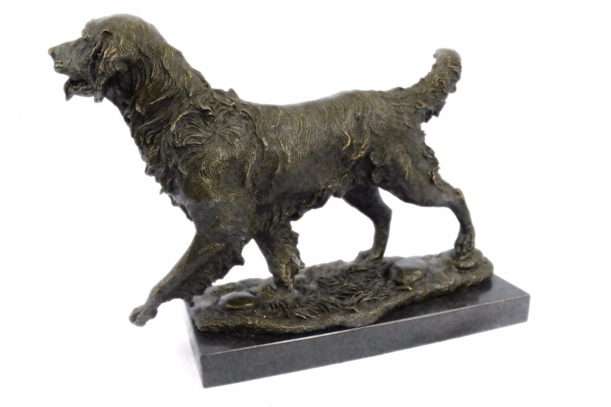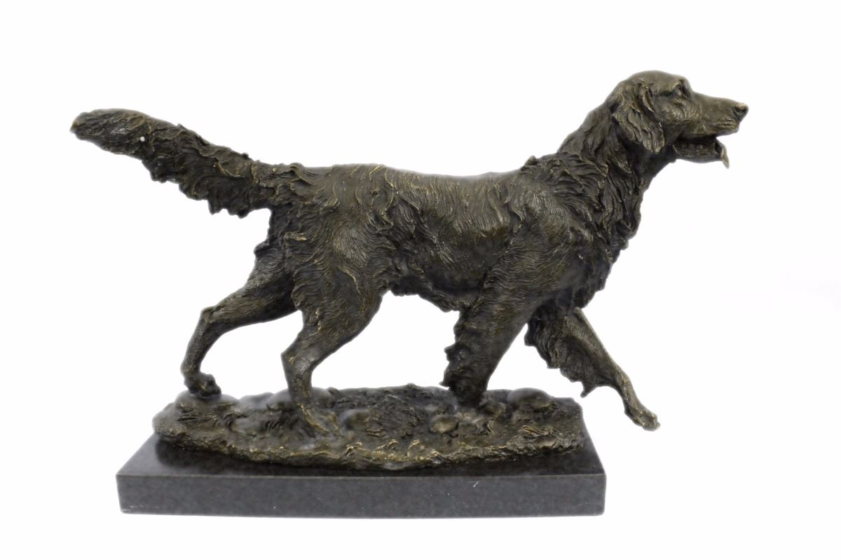 The Golden Retriever Can Be Imagined Stepping Out Of A Lake, Its Fur Water-Drenched, As His Eyes Signal Its Owner To Throw The Ball One More Time. His Eyes Stare Unblinking Waiting For The Thrust Of The Ball That Will Send Him, Tail Whipping, Legs Bounding, Back Into The Calm Waters. The Bronze Sculpture Was Cast Using The Age-Old Method Of Lost-Wax Casting And Stained With A Brown Patina Finish For Perpetuation. It Is Mounted Upon A Black Marble Base With The Artist Brayer's Signature. Antoine-Louis Barye (September 24, 1796 – June 25, 1875) Was A French Sculptor Most Famous For His Work As An Animalize, A Sculptor Of Animals. Born In Paris, Barye Began His Career As A Goldsmith, Like Many Sculptors Of The Romantic Period. After Studying Under Sculptor Francois-Joseph Bosio And Painter Baron Antoine-Jean Gros He Was In 1818 Admitted To The École Des Beaux Arts. But It Was Not Until 1823, While Working For Fauconnier, The Goldsmith, That He Discovered His True Predilection From Watching The Animals In The Jardin Des Plants, Making Vigorous Studies Of Them In Pencil Drawings Comparable To Those Of Delacroix, Then Modeling Them In Sculpture On A Large Or Small Scale. Bronze Dimensions With Marble Base: Height 12 X Width 16 inches. Weight: 18 Lbs.
