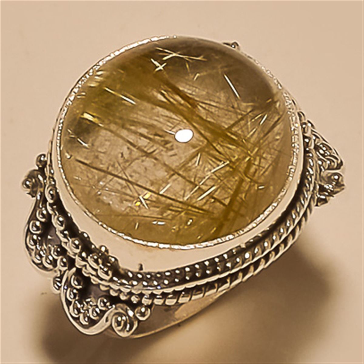 Golden Rutile RING Solid Sterling Silver Length:0.5inch Weight:10gram #R-071