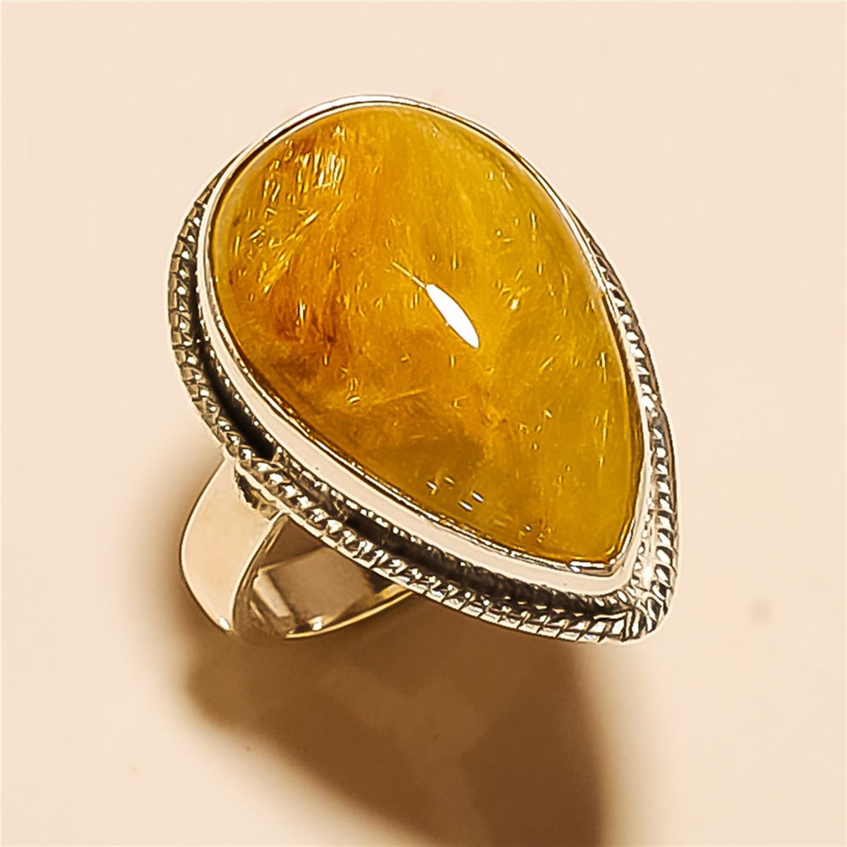 Golden Rutile RING Solid Sterling Silver Length:0.75inch Weight:7gram #R-097