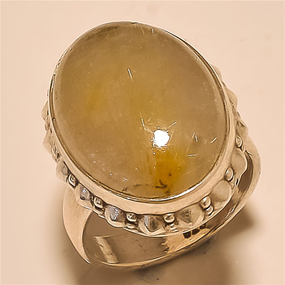 Golden Rutile RING Solid Sterling Silver Length:1inch Weight:10gram #R-072