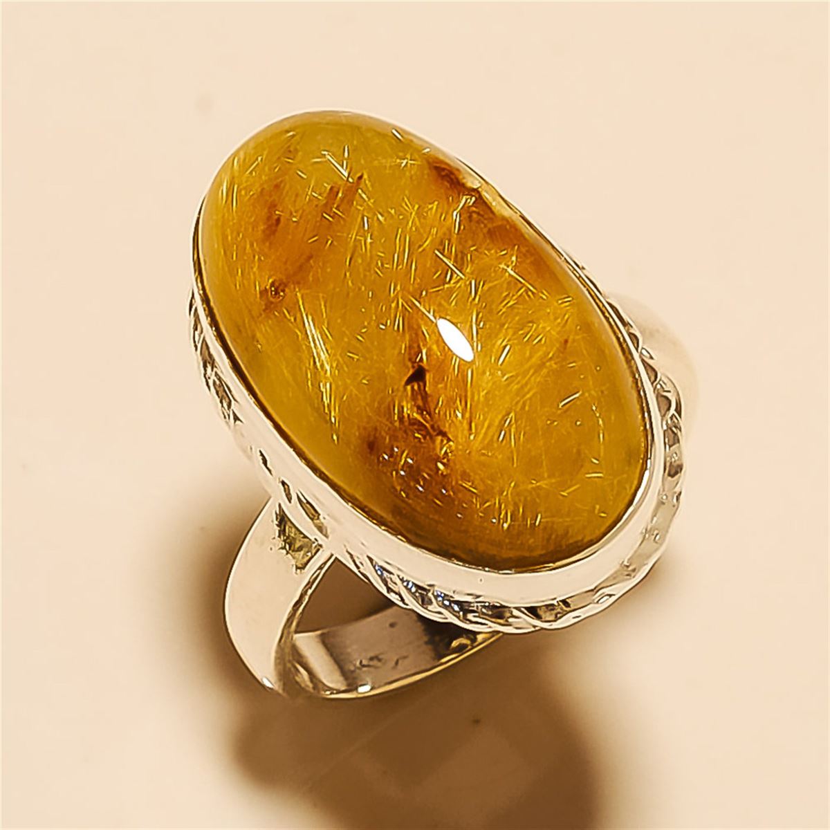 Golden Rutile RING Solid Sterling Silver Length:0.75inch Weight:8gram #R-063