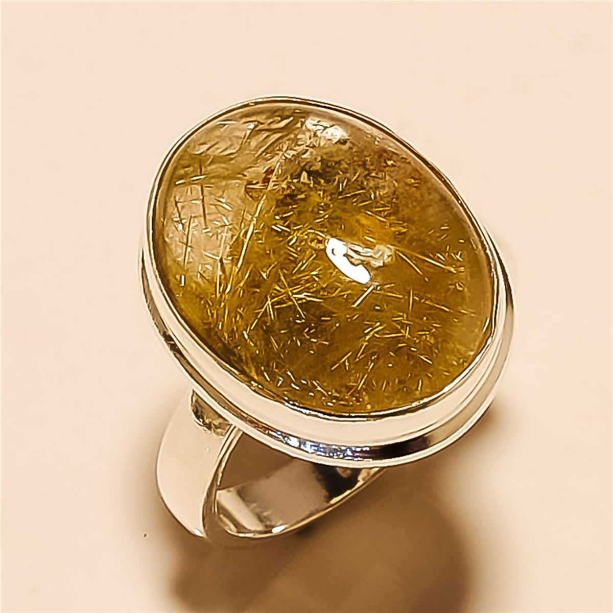 Golden Rutile RING Solid Sterling Silver Length:0.75inch Weight:8gram #R-127