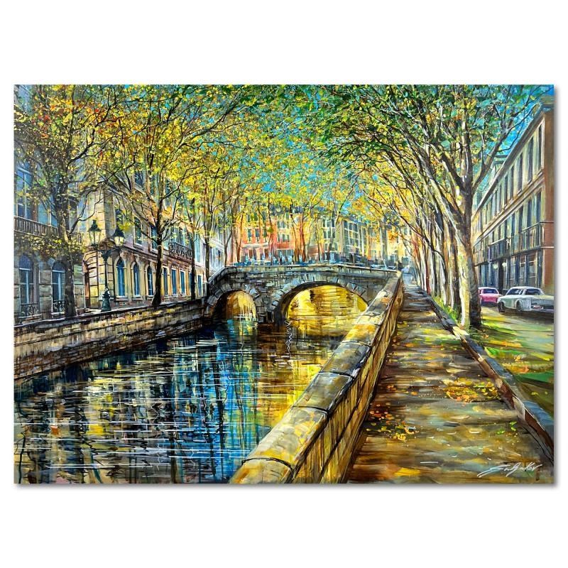 "Golden September" is an original oil painting on stretched canvas by Vadik Suljakov, hand signed by the artist. Includes Letter of Authenticity. Measures approx. 40" x 30" (image).