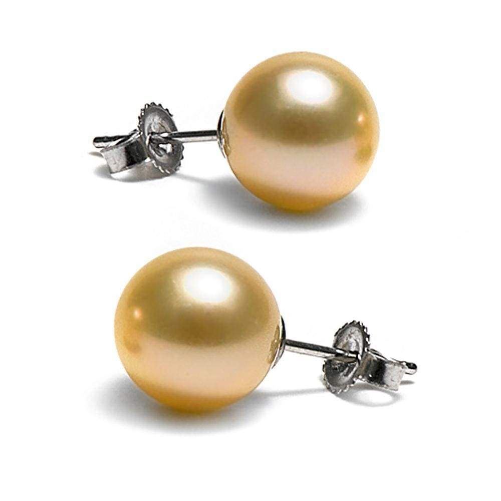 Golden South Sea Pearl Stud Earrings, 9.0-10.0mm