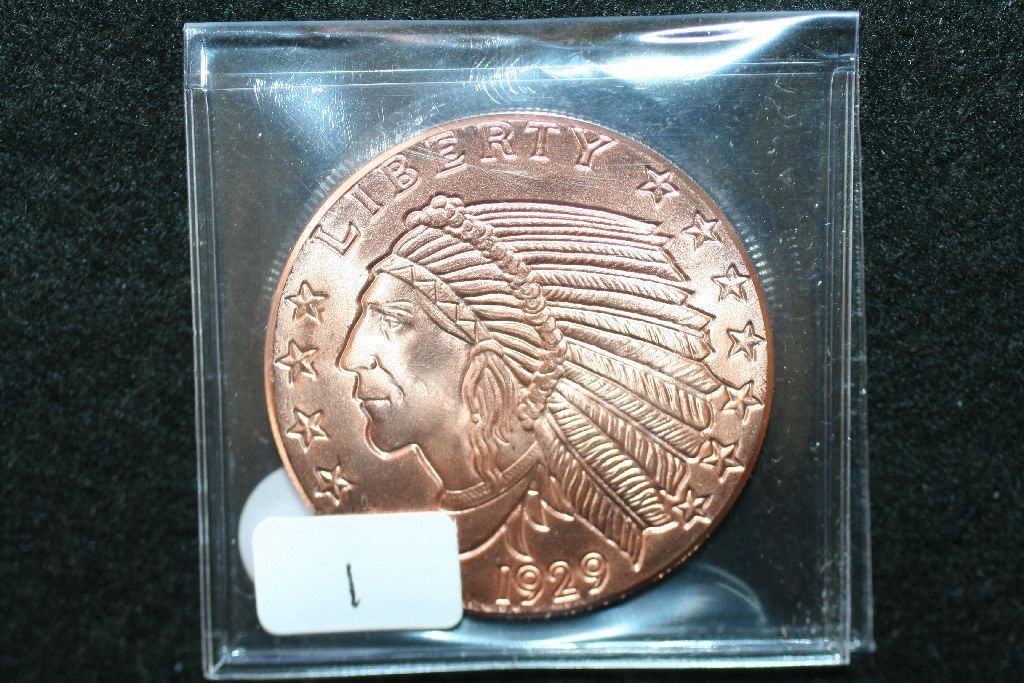 Golden State Mint "1929 Indian Chief $5 Gold Coin" Copper Round; .999 Fine Copper 1 Oz.