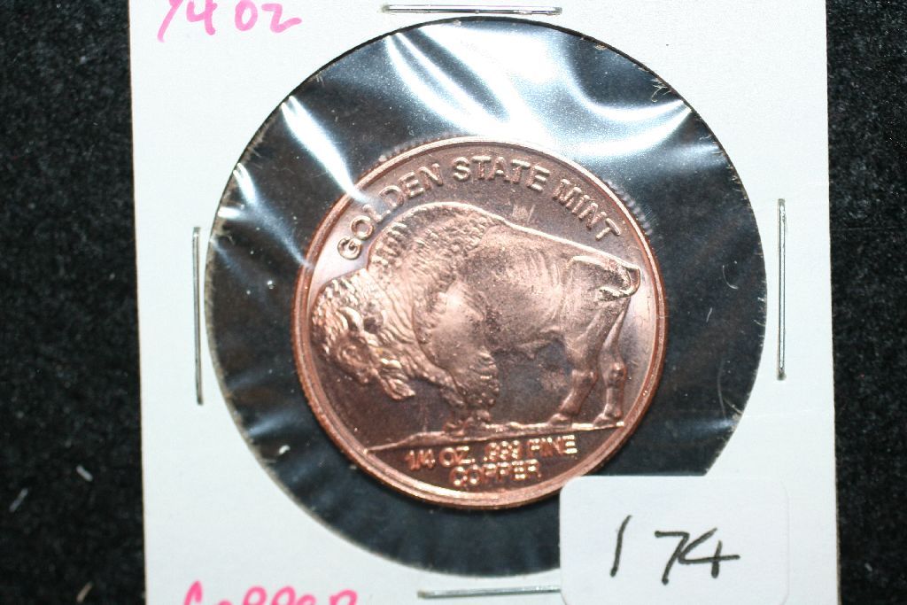 Golden State Mint "Buffalo Nickel" Copper Round; .999 Fine Copper 1/4 Oz.