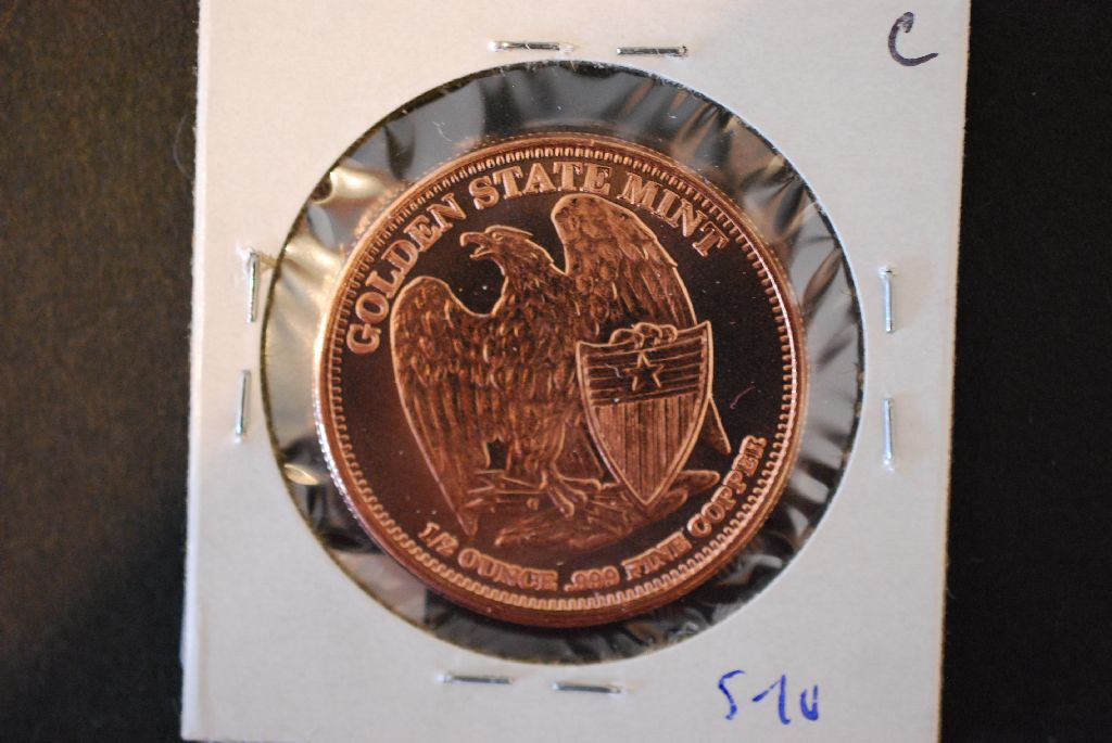 Golden State Mint Copper Round; .999 F. C 1/2 Oz.; EST. $5-10