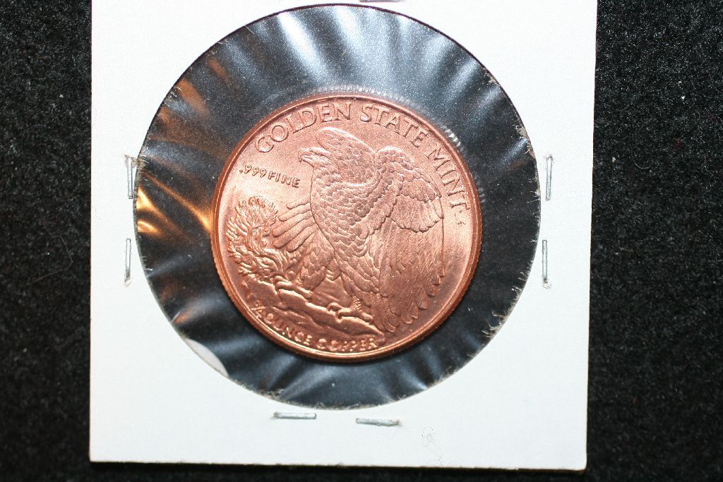 Golden State Mint Copper Round; .999 Fine Copper 1/4 Oz.