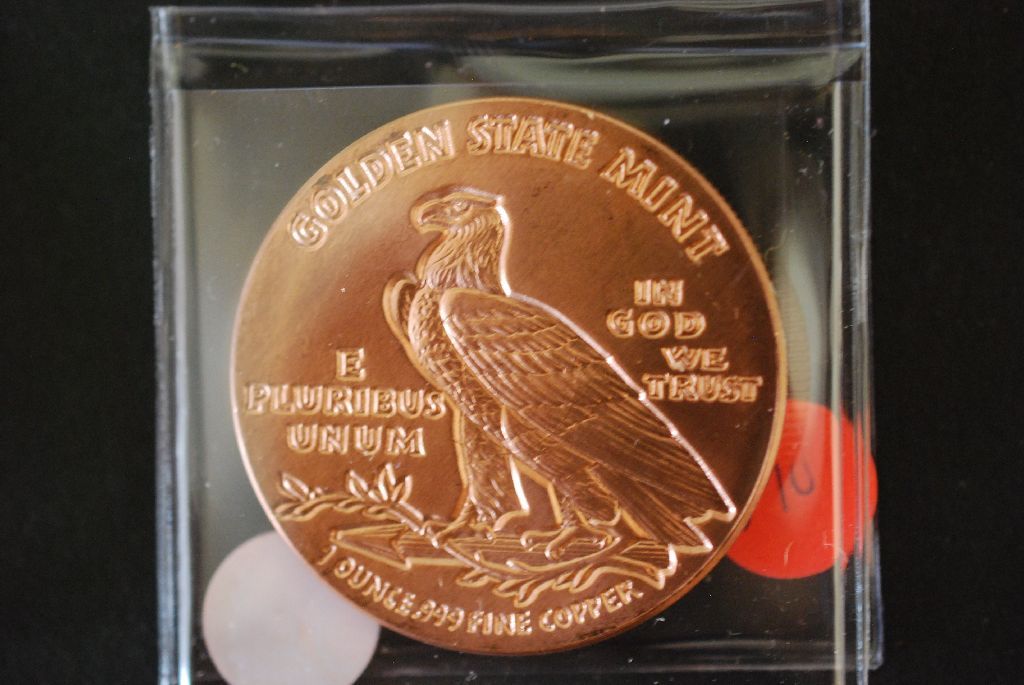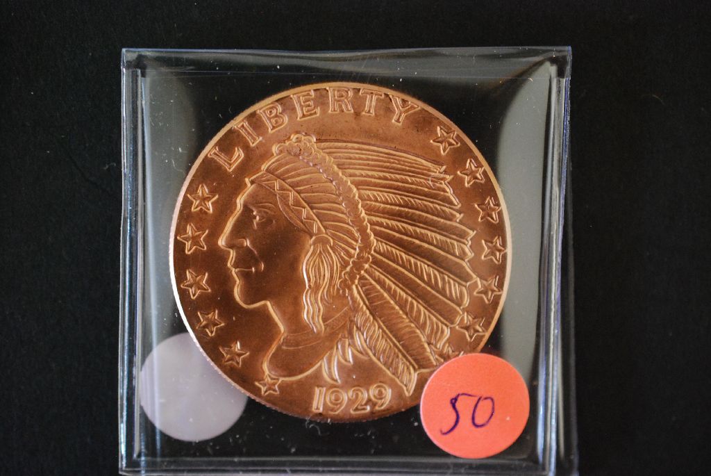 Golden State Mint Copper Round; .999 Fine Copper 1 Oz.; "1929 $5 Gold Piece"; EST. $5-10