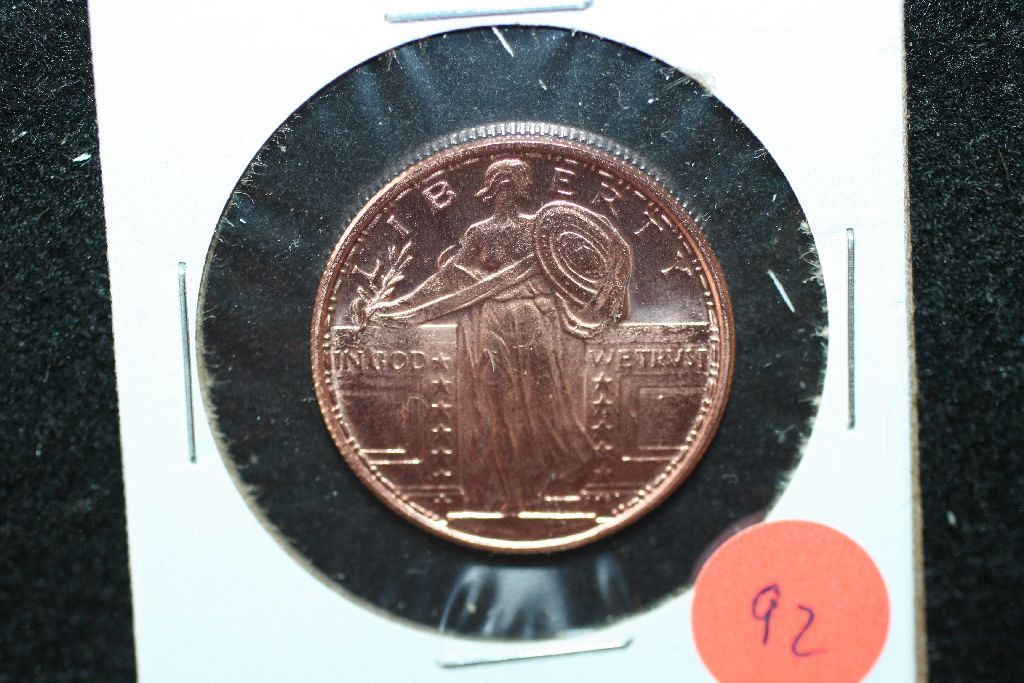 Golden State Mint "Standing Liberty" Copper Round; .999 Fine Copper 1/4 Oz.