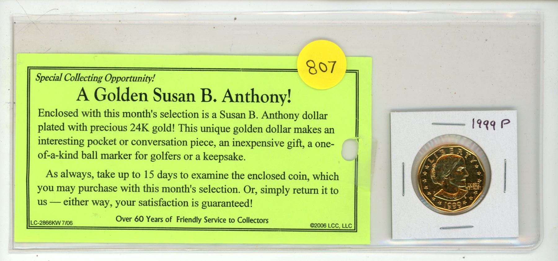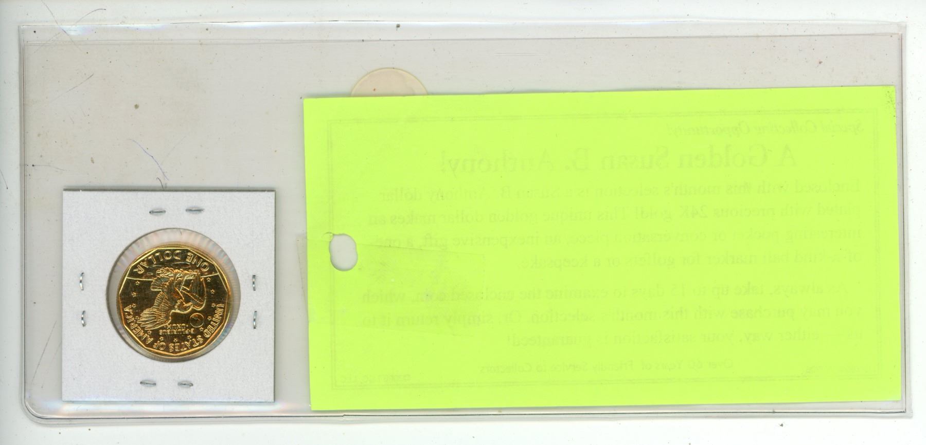 Golden Susan B. Anthony U.S. 1999P Dollar. Plated in 24-karat Gold. Unc.