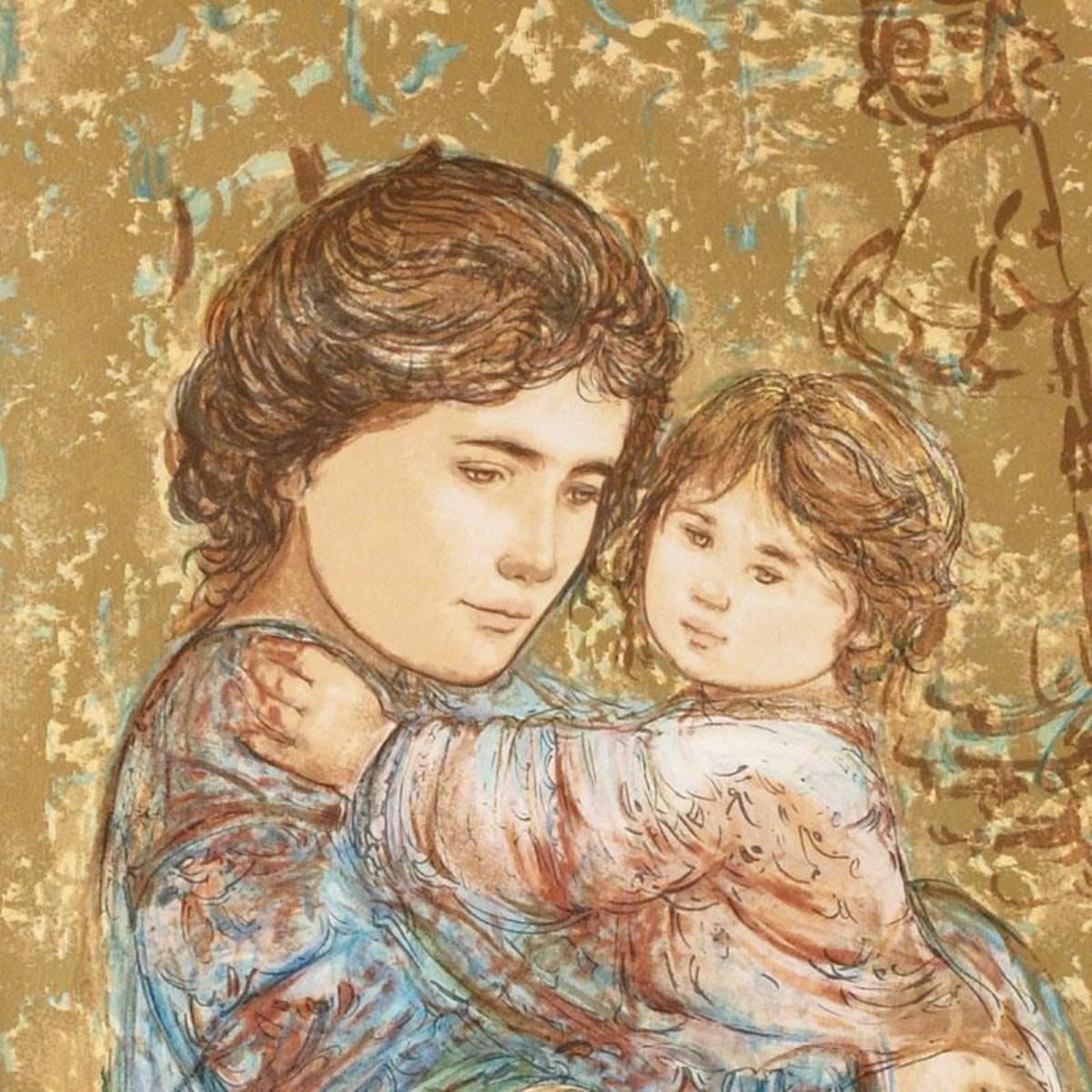 "Golden Times" is a limited edition serigraph on paper, numbered and hand signed by Edna Hibel (1917-2014). Includes Certificate of Authenticity! Measures approx. 19" x 30" (with border), 15" x 26" (image).