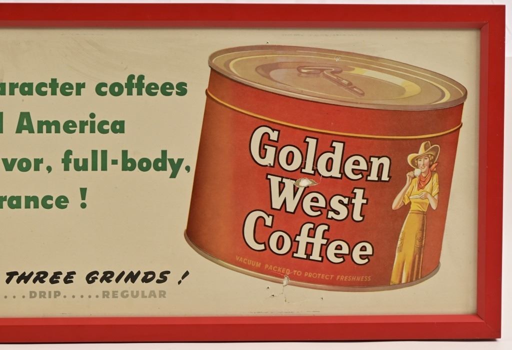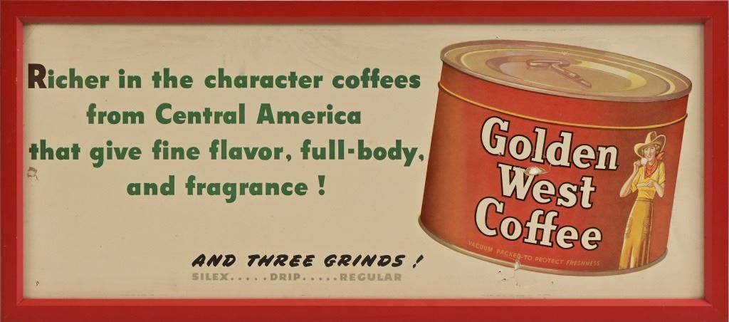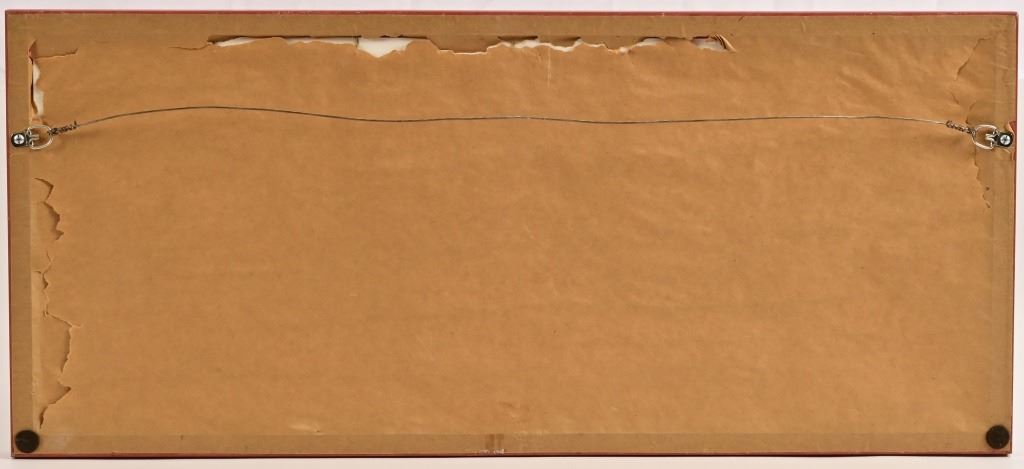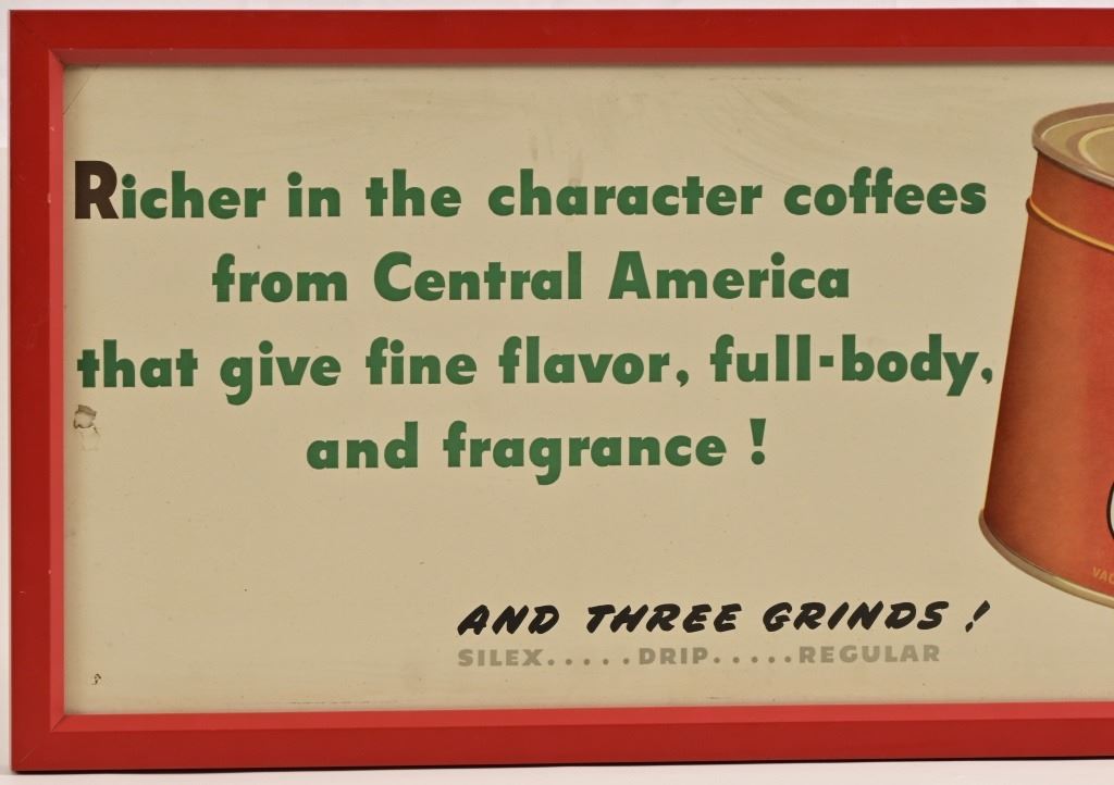 Paper advertisement over cardboard. Some condition issues. Framed 12.5" x 28"