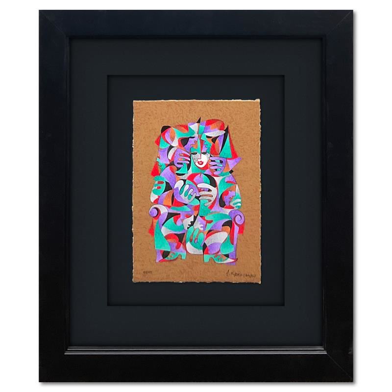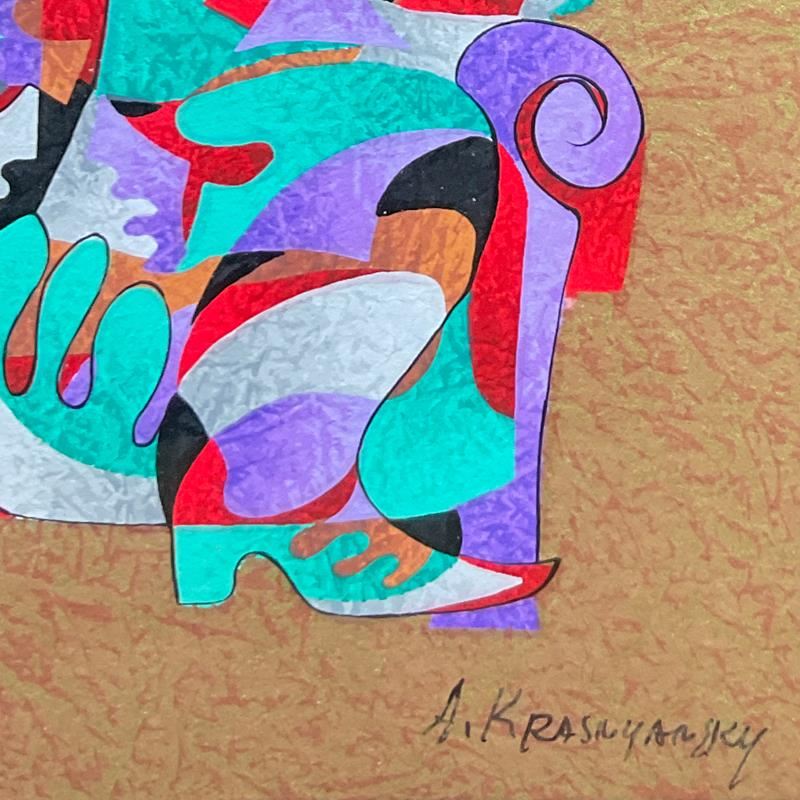 "Golden Yellow with Brown" is a limited edition serigraph on woven paper by Anatole Kransyansky, numbered 192/495 and hand signed by the artist. This piece comes framed. Includes Letter of Authenticity. Measures approx. 22.5" x 19.5" (frame), 11" x 8" (image). There is some wear on the frame and the signature is slightly faint.