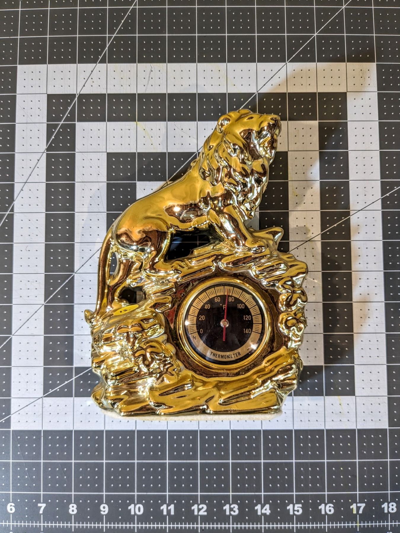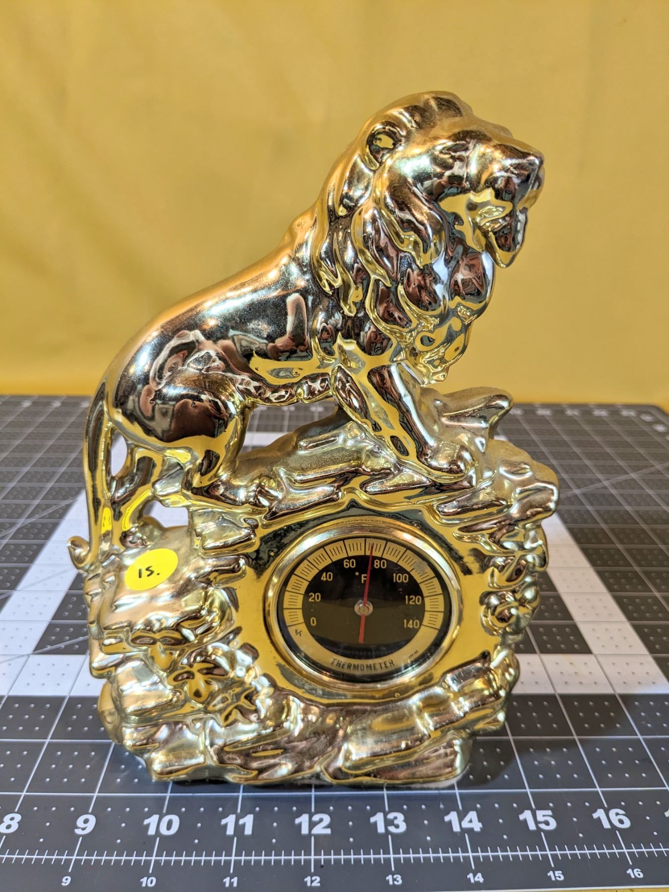 Golden lion thermometer from Japan. Great condition. 9-10 in tall, 6 in wide.