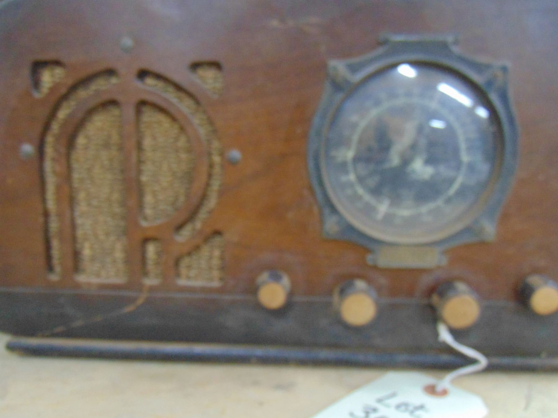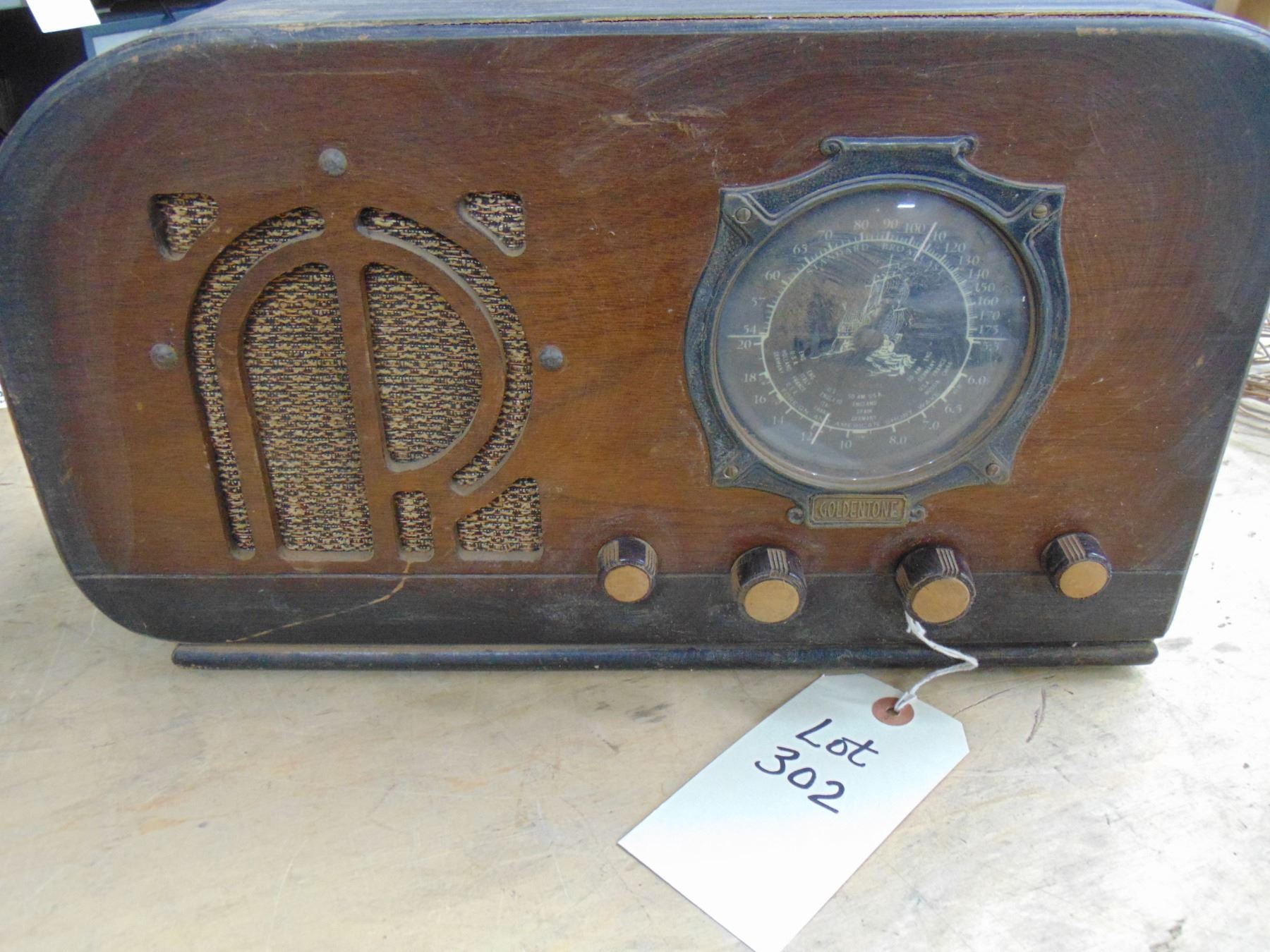 Goldentone wood table battery set; some cabinet gluing needed; great dial face.