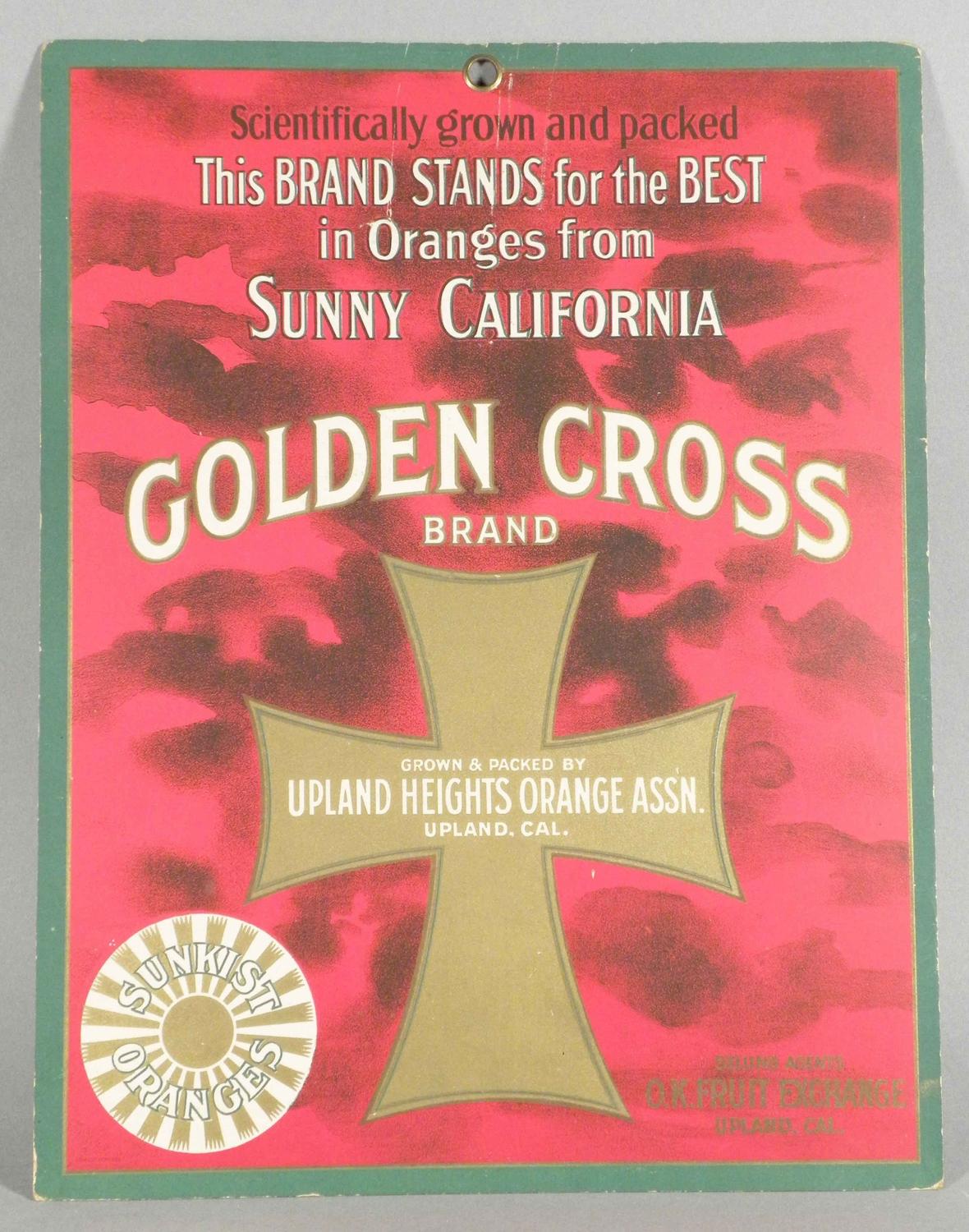Goldern Cross Brand Cardboard Sign. Excellent condition. 10 1/2 X 13 1/2 inches. Starting bid $20