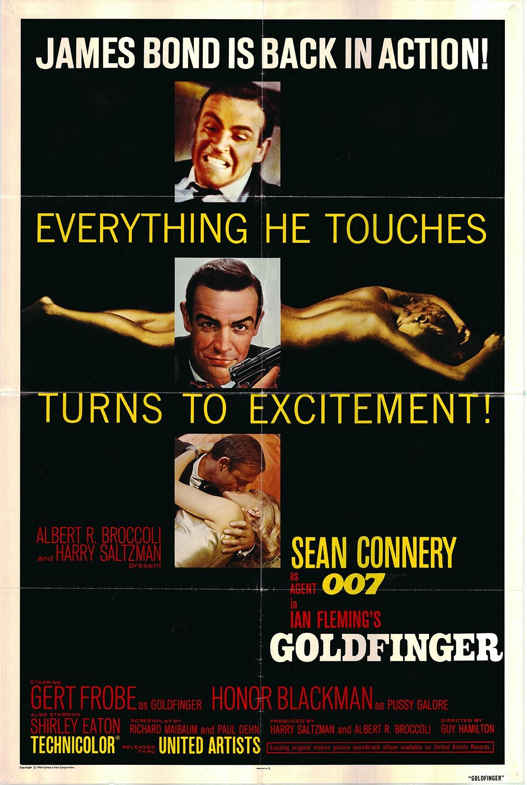 Goldfinger Original 1964R Vintage One Sheet Poster. Folded.27X41 Inches