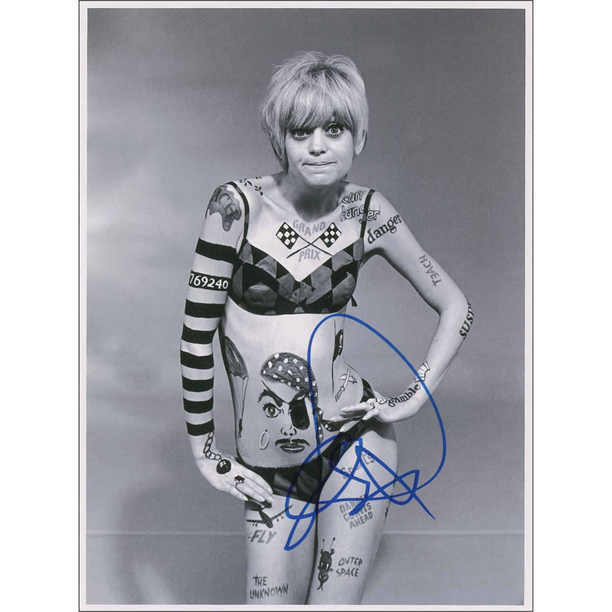 Satin-finish 8 x 10 photo of the bikini-clad actress as she appeared on Laugh In, signed in-person in blue felt tip. In very fine condition.