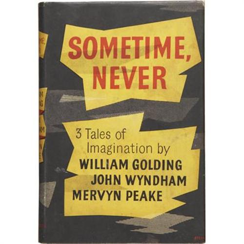 <B>William Golding, John Wyndham, and Mervyn Peake. </B></I><B><I>Sometime, Never</B></I></B></I>. <I>Three Tales of Imagination</B></I>. London: Eyre & Spottiswoode, 1956. <BR>First edition. Twelvemo. 224 pages.<BR><BR>Publisher's green cloth with gilt spine titles. In the original dust jacket. Minor edge wear to the book. The textblock shows mild foxing along the edges and at the endpapers. Dust jacket shows mild edge wear and moderate foxing to the rear panel. Overall, a very good copy.<BR><BR>Collects three novellas: "Envoy Extraordinary" by Golding, "Consider Her Ways" by Wyndham, and "Boy in Darkness" by Peake. <I>From the Robert and Diane Yaspan Collection.</B></I><BR><BR><b>Shipping:</b> Books & Catalogs (<a target="_blank" href="http://www.heritageauctions.com/common/shipping.php">view shipping information</a>)