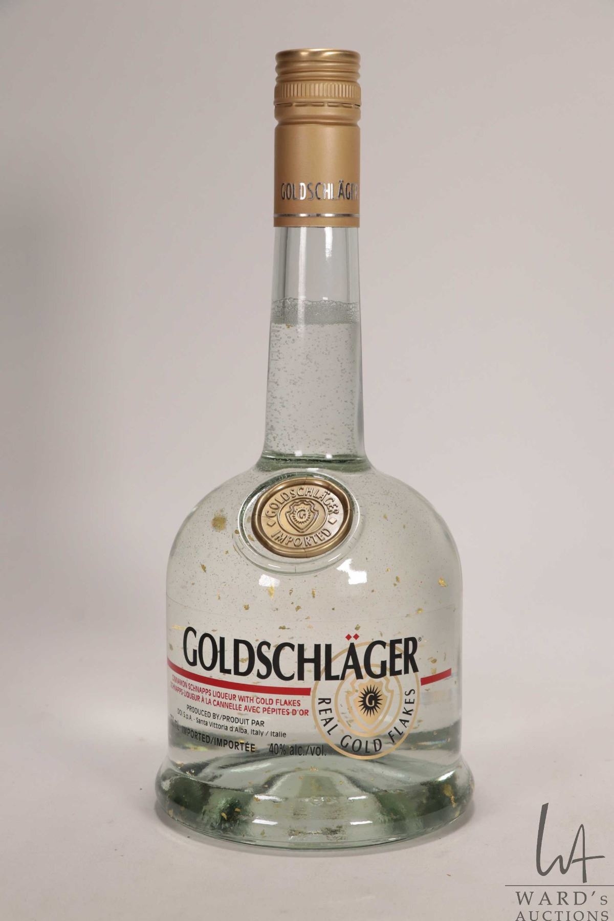Goldschlager/ Cinnamon Schnapps Liqueur with gold flakes/ 750ml/ 40% ABV Note: Alcohol cannot be ins